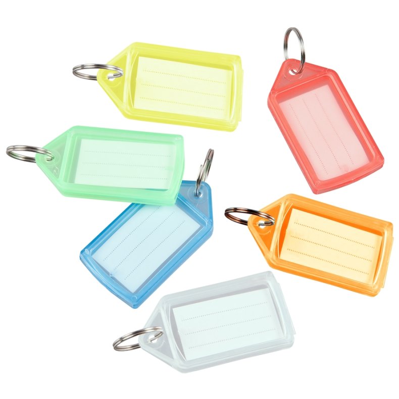 Nyckelring i transparent plast i olika färger inkl. ring med papperinsats, läsbar på båda sidor.